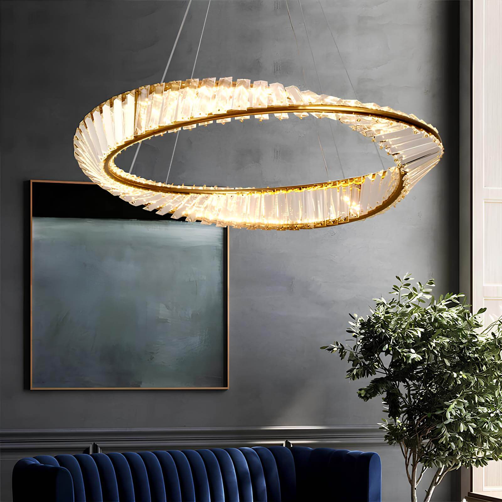 L’anneau doré sublimé par des cristaux taillés réfléchit la lumière pour créer une atmosphère unique.