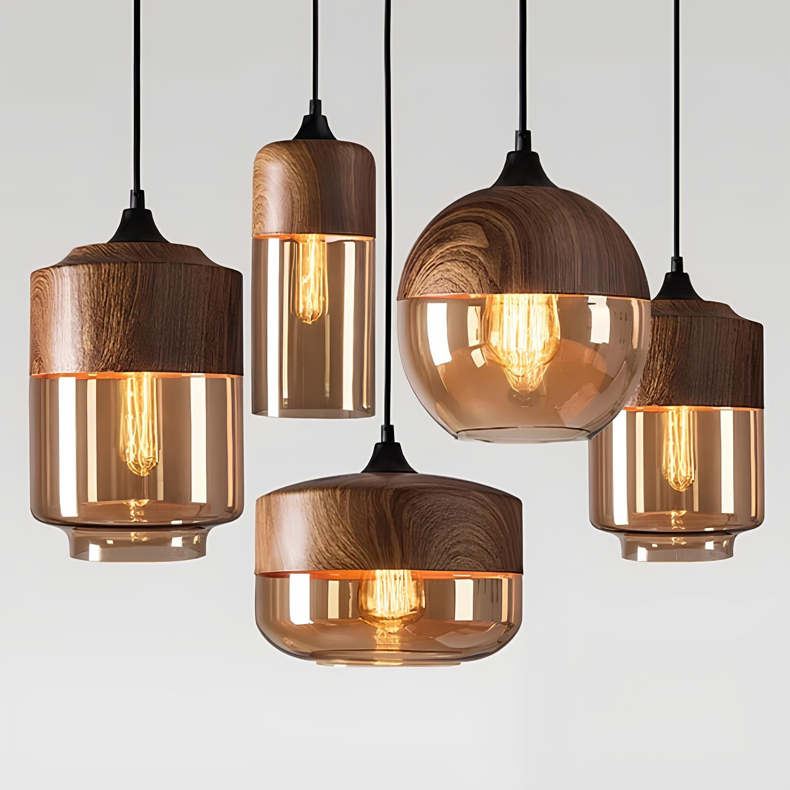 Avec son mélange de bois et de verre couleur cognac, cette suspension apporte chaleur et élégance à votre intérieur. Déclinée en plusieurs formes (ronde, tube, cylindre ou boule), elle s’adapte à tous les styles de décoration.