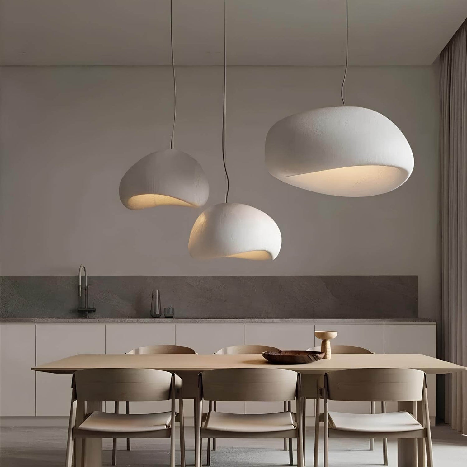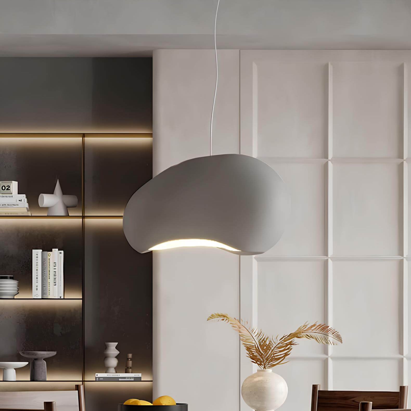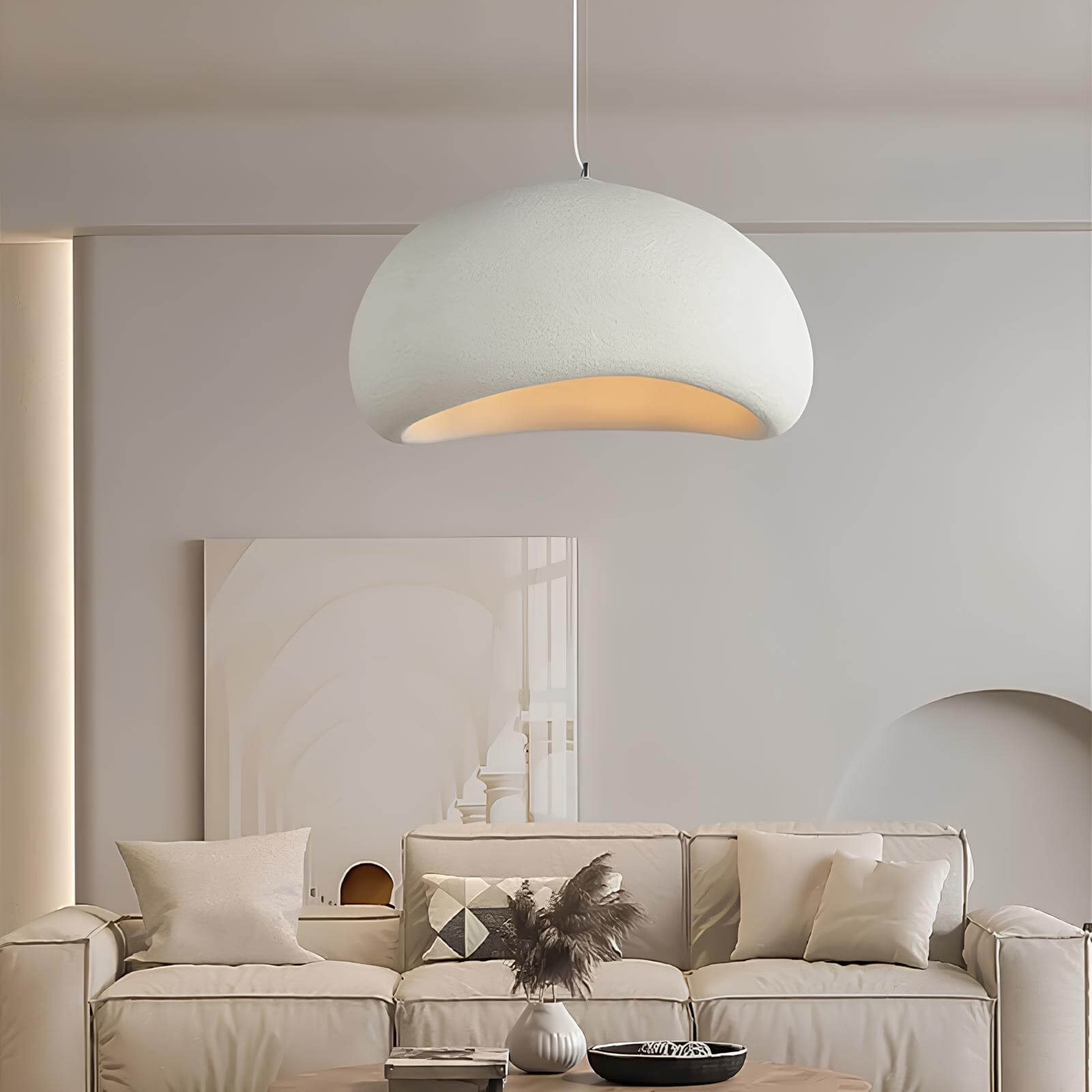 Sous la lumière de cette suspension, la pièce se transforme. La résine diffuse un éclat naturel et enveloppant, parfait pour créer une atmosphère cosy au quotidien.