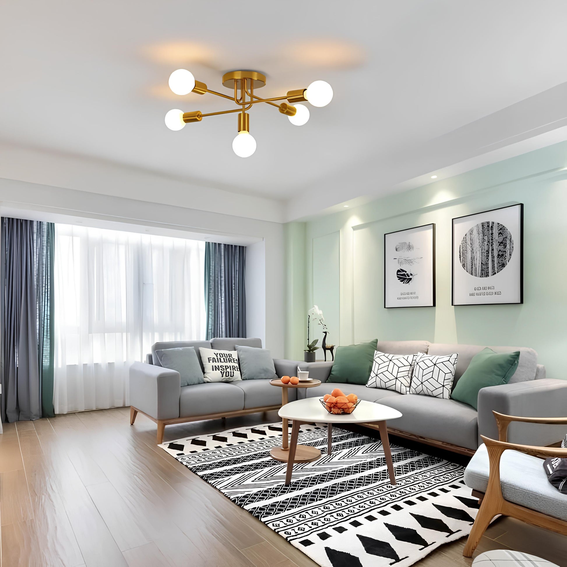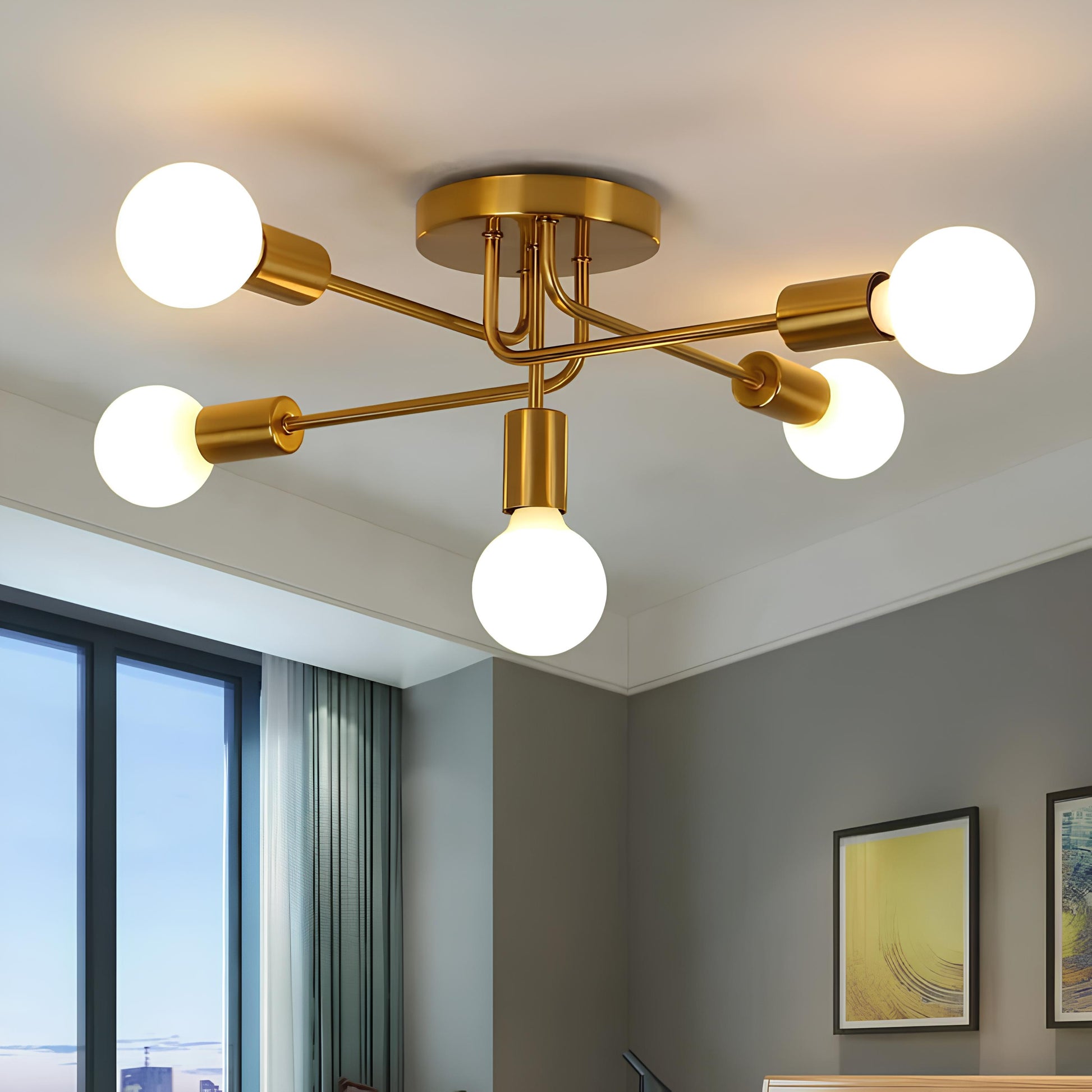 Une suspension dorée au design rétro et élégante, dotée de 5 bras orientables pour un éclairage unique et personnalisé. Parfait pour illuminer un salon, une chambre ou une cuisine avec style et caractère.