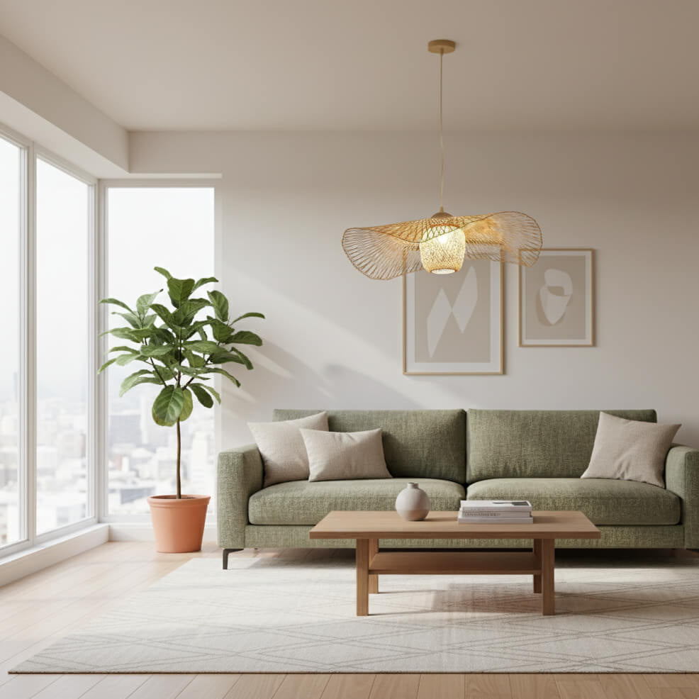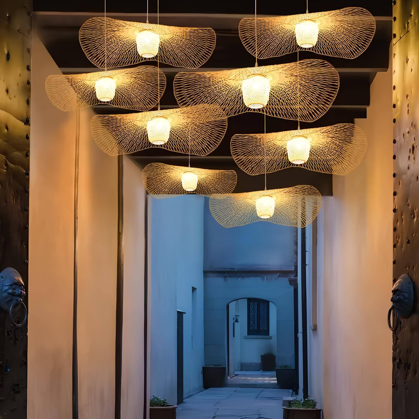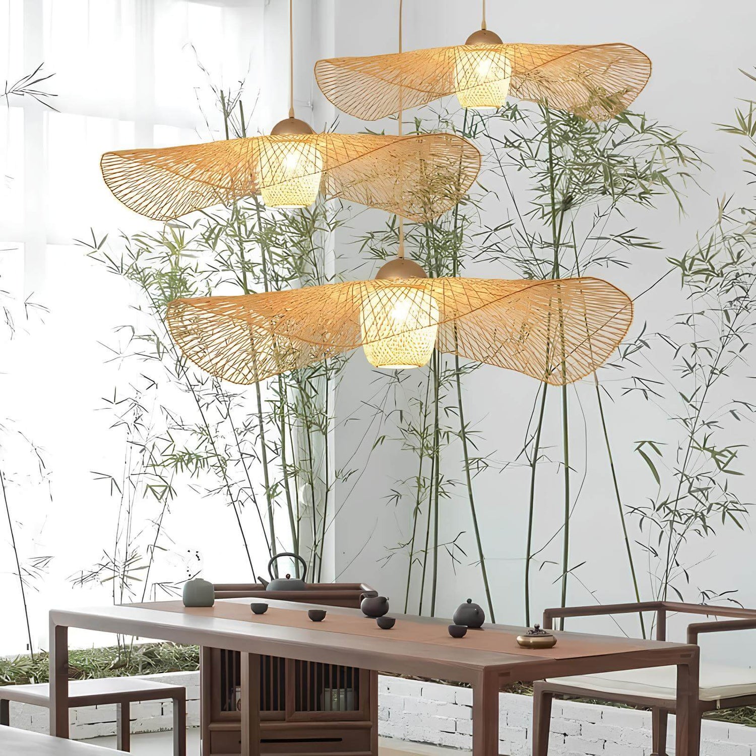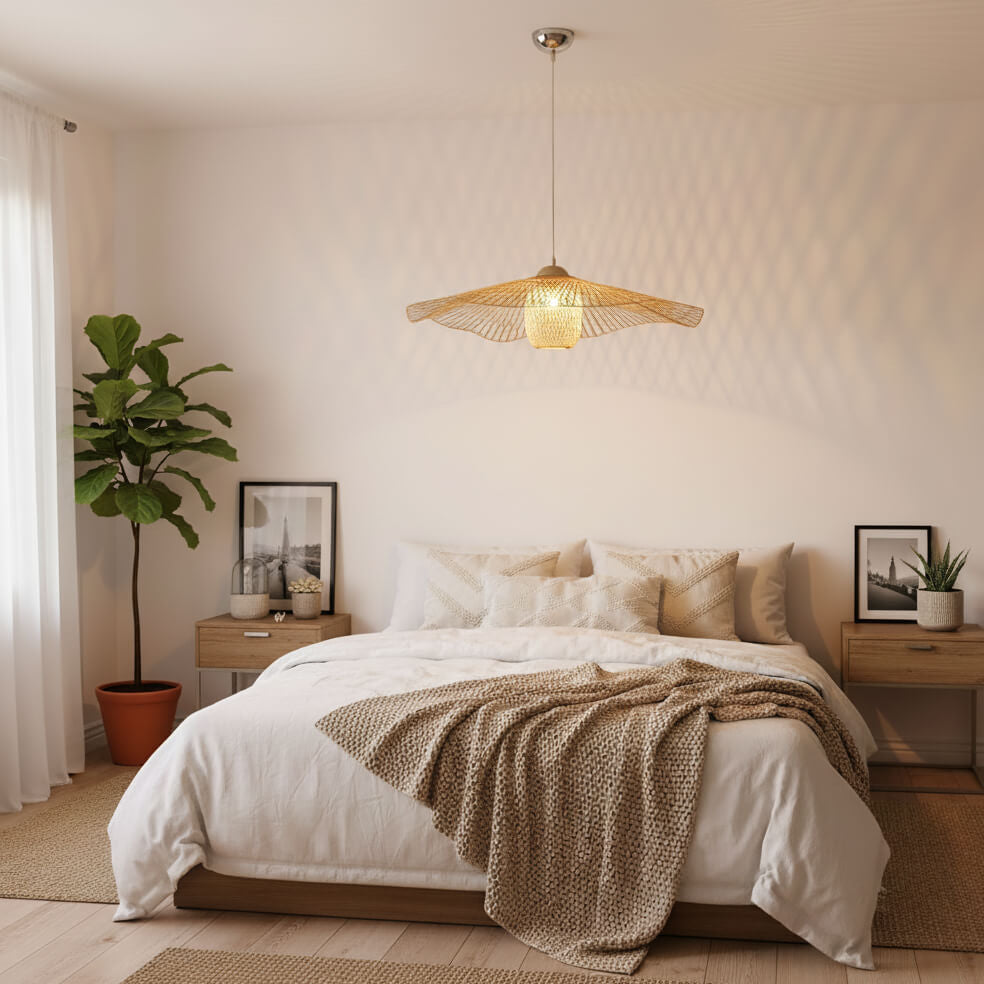 Tressée en bambou avec une structure élégante, cette suspension diffuse une lumière chaleureuse qui habille instantanément la pièce. Son style inspiré du Japon associe sobriété et modernité, pour un rendu à la fois zen et raffiné.