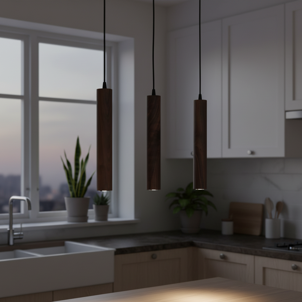 Avec ses lignes épurées et son abat-jour en bois gravé, cette suspension s’adapte aussi bien aux intérieurs contemporains qu’aux ambiances plus authentiques.