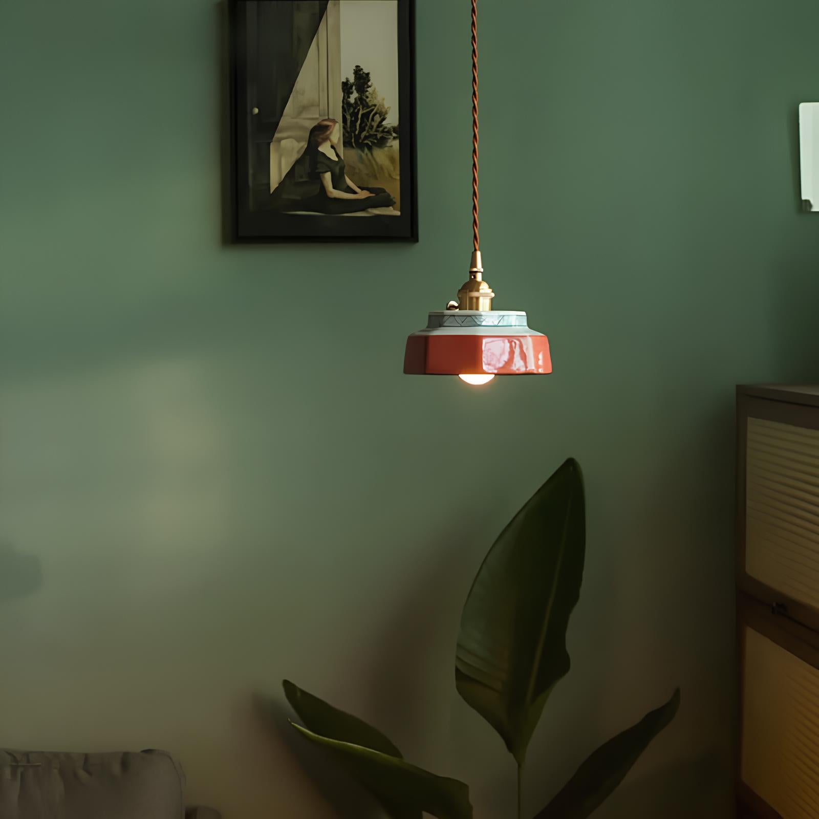 Avec son abat-jour en céramique travaillé et ses détails, cette suspension rappelle l’esthétique des luminaires anciens tout en s’intégrant parfaitement dans des intérieurs contemporains.