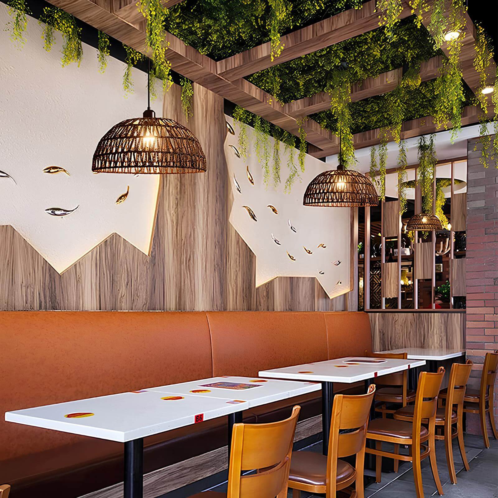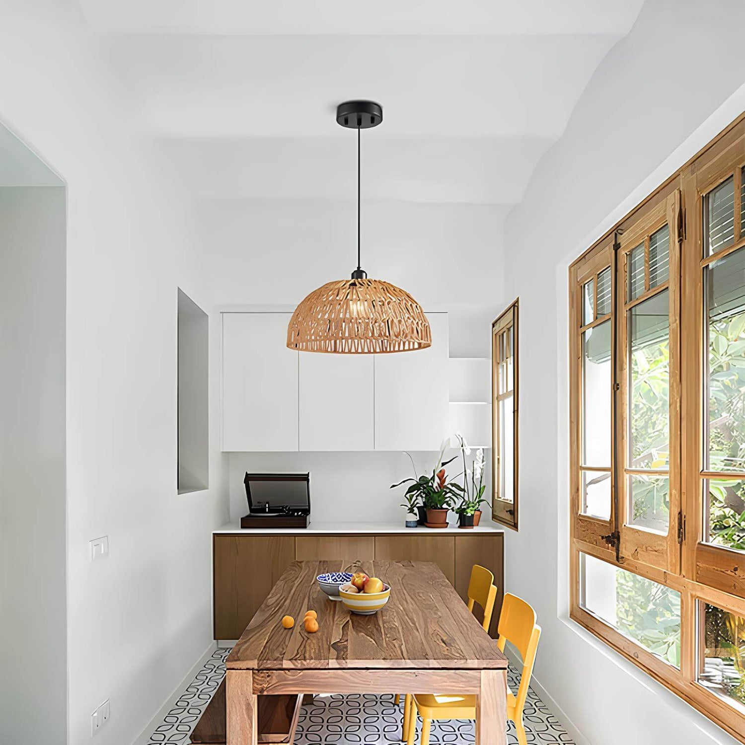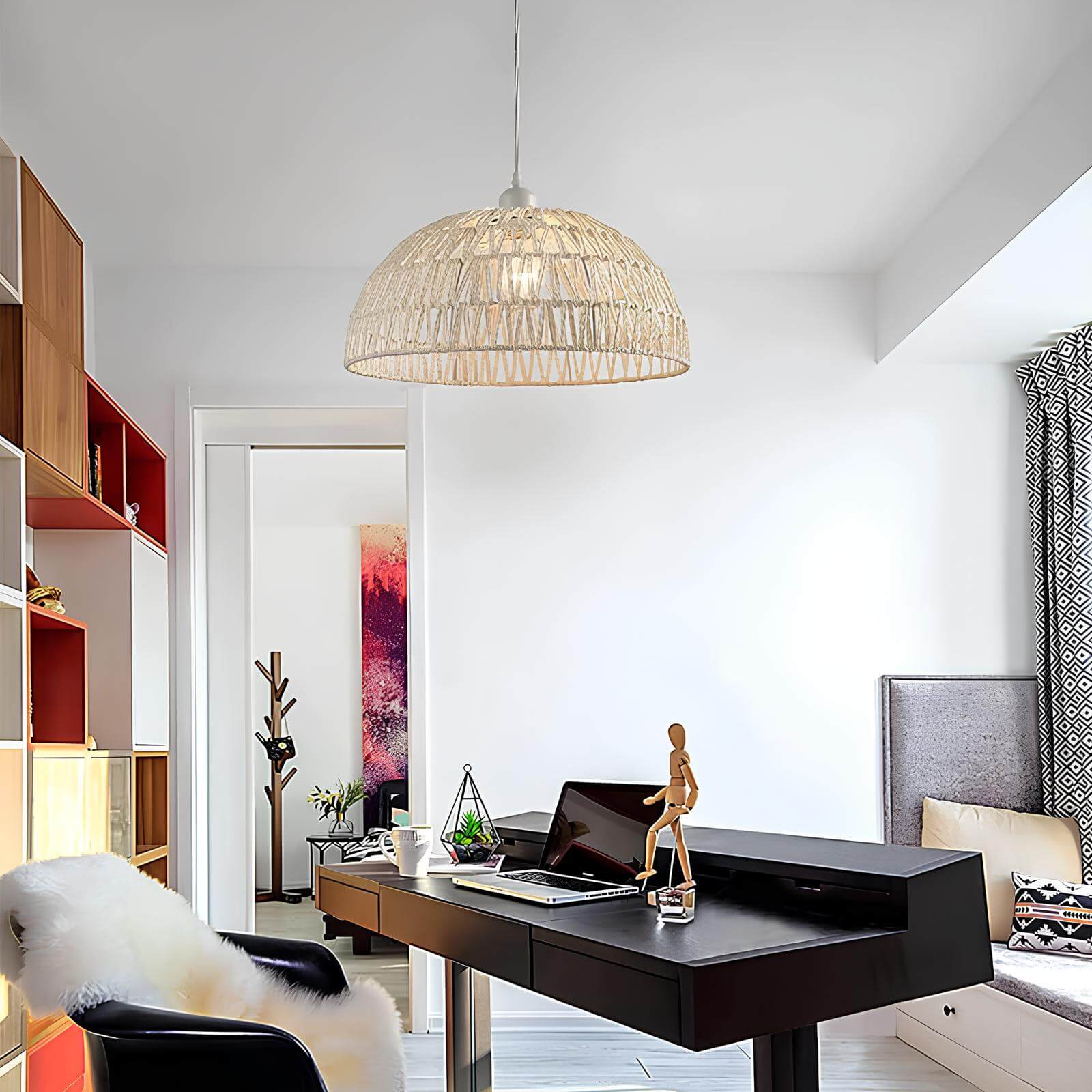 Inspirée du style japonais, cette suspension en rotin diffuse une lumière subtile qui transforme chaque espace en un lieu serein et harmonieux.