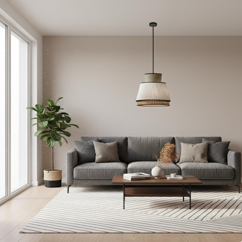 Cette suspension associe la texture naturelle du rotin à la douceur du tissu, pour une création décorative unique.