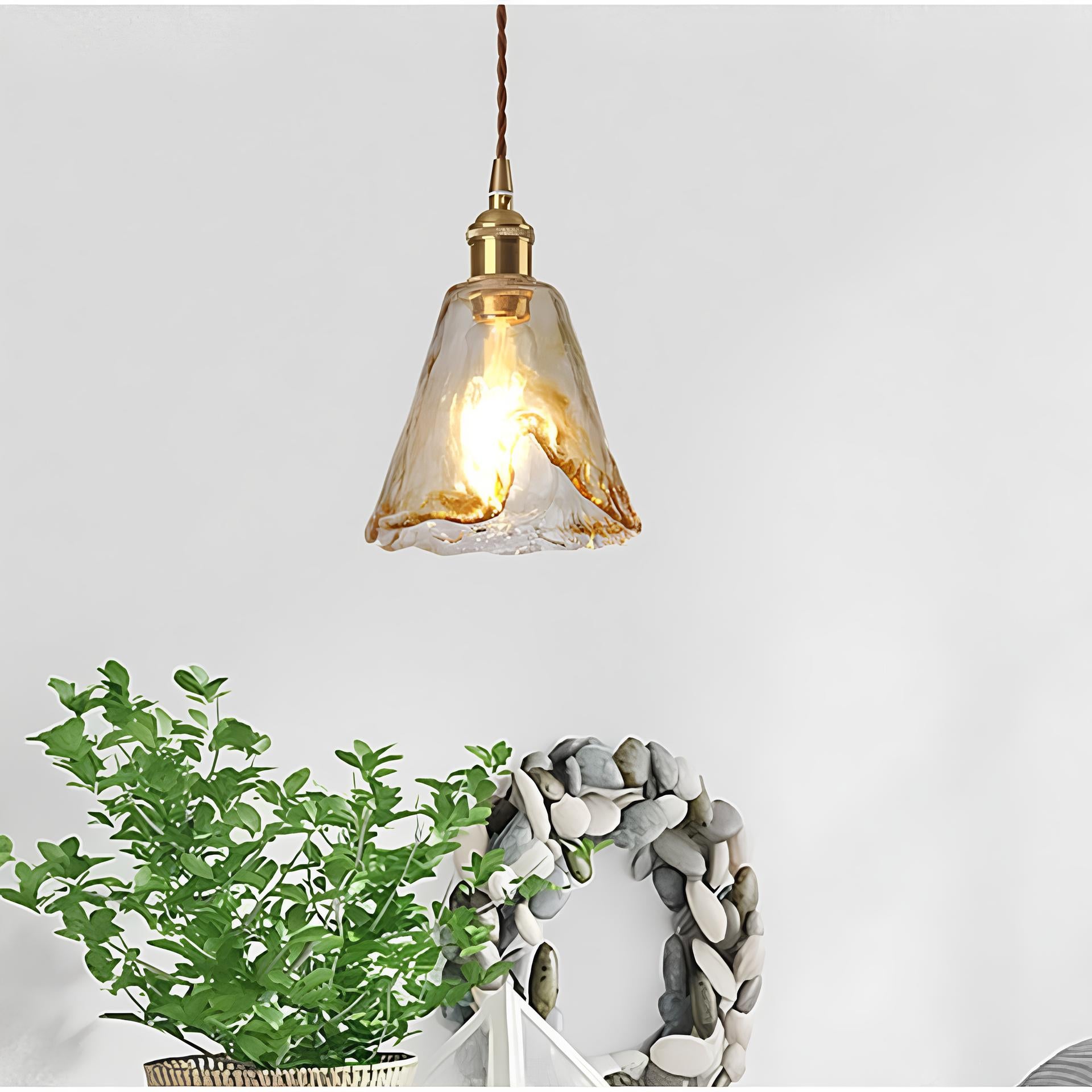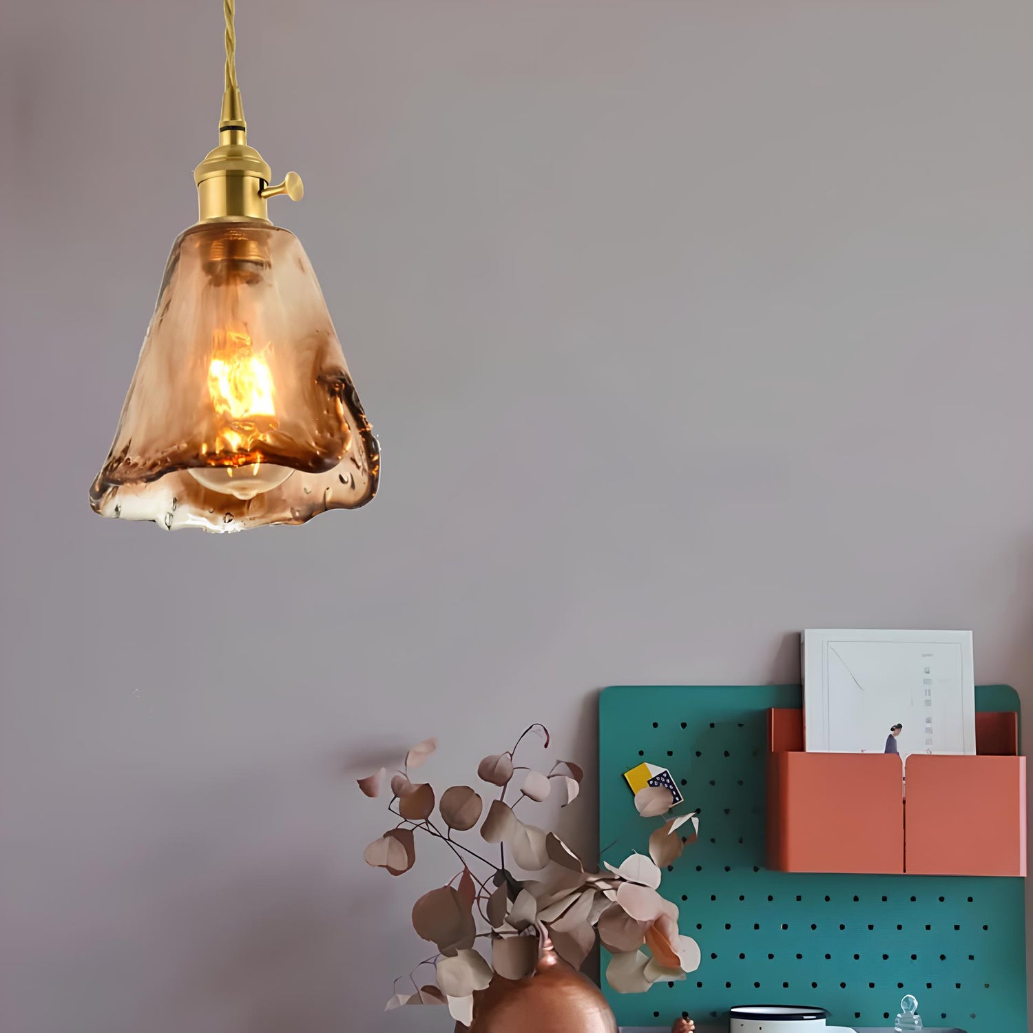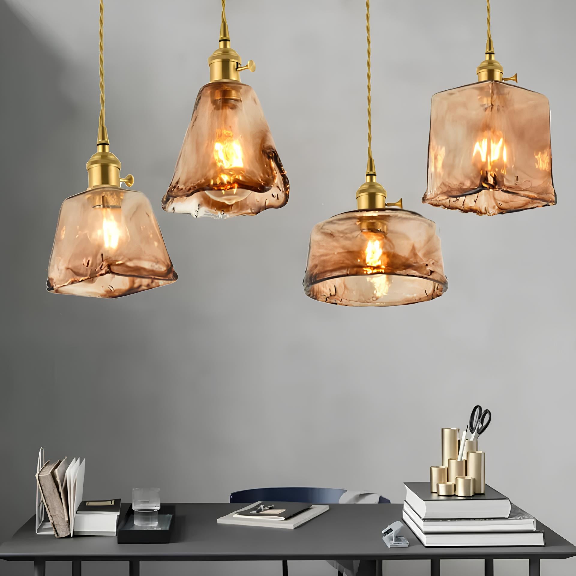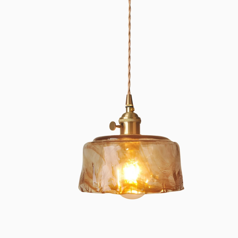 Cette suspension en verre brun diffuse une lumière douce et feutrée. Idéale pour créer une atmosphère chaleureuse et élégante dans une chambre, un salon ou un bureau.