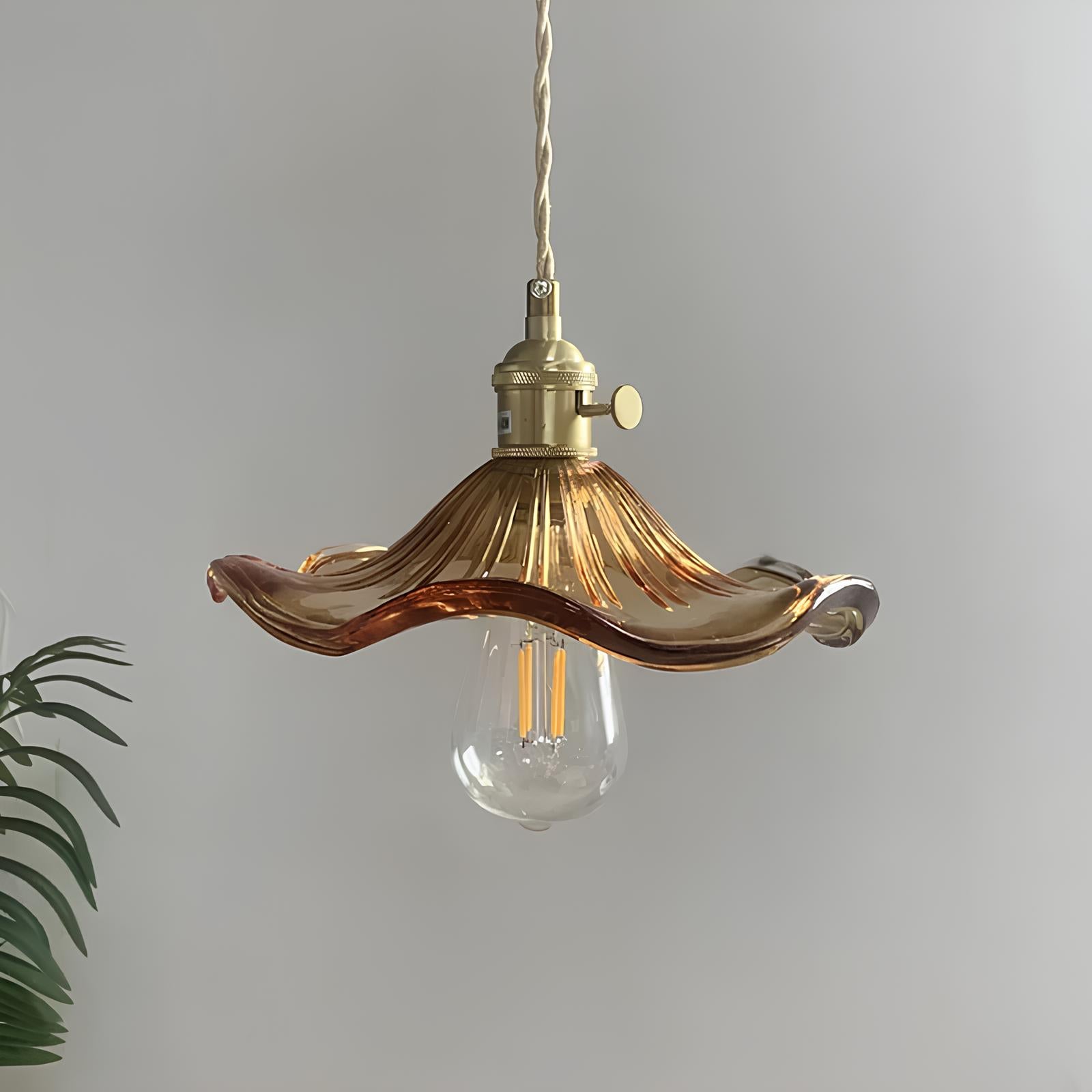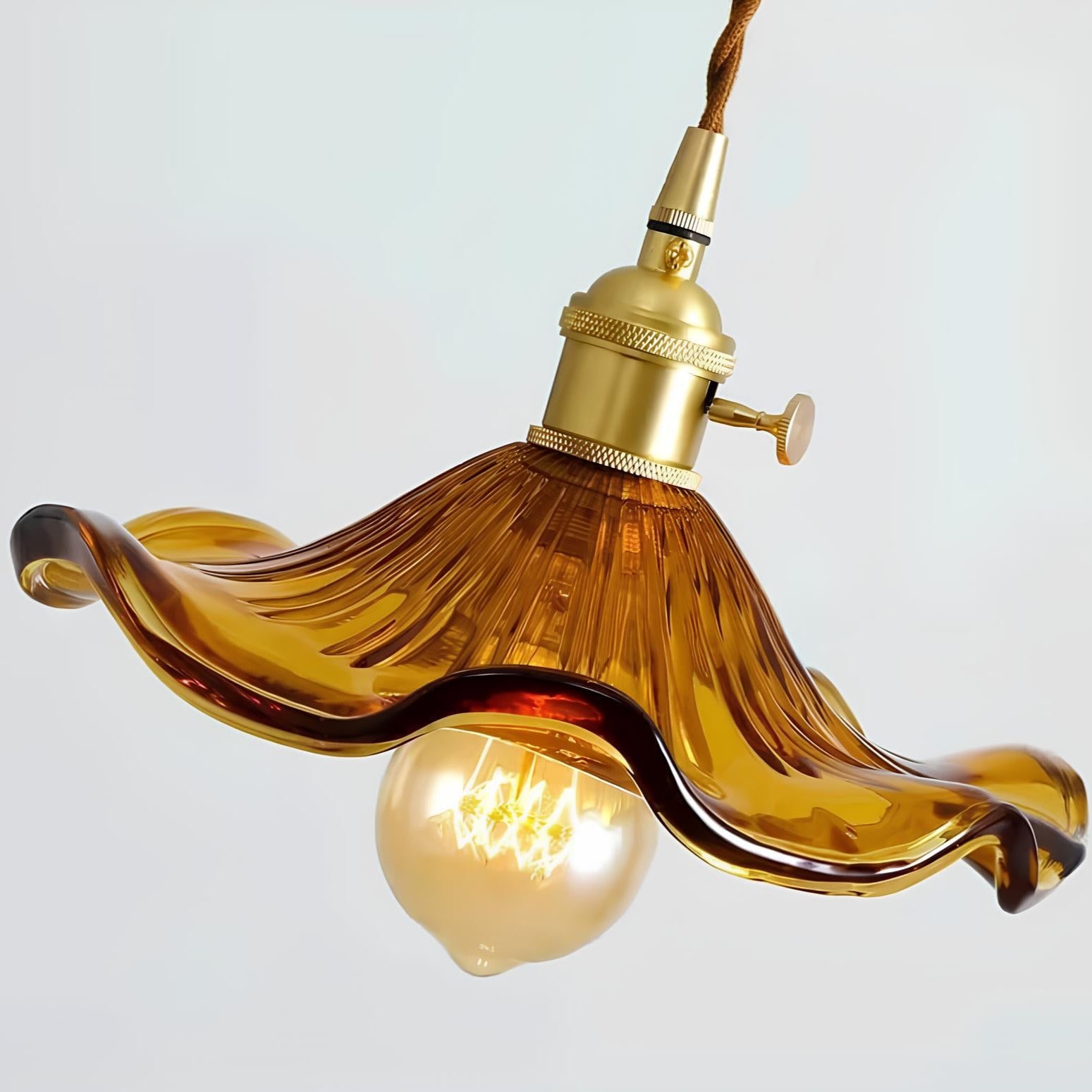 Sa structure en cuivre poli apporte une touche raffinée, tandis que son abat-jour en verre coloré s’intègre aussi bien dans un univers moderne que dans une ambiance plus traditionnelle.