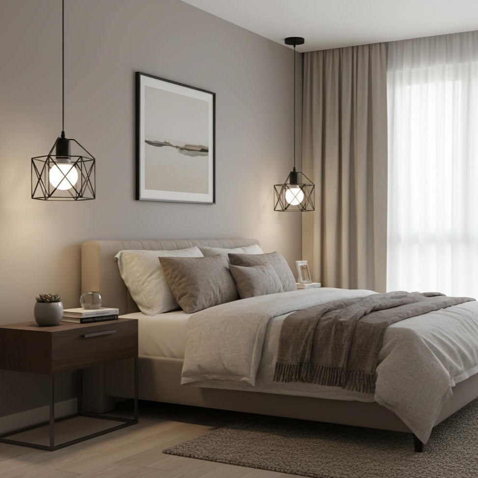 Cette suspension associe robustesse et simplicité grâce à sa structure en métal brossé. Son abat-jour en cage laisse passer la lumière de manière fluide, créant une atmosphère conviviale et authentique.