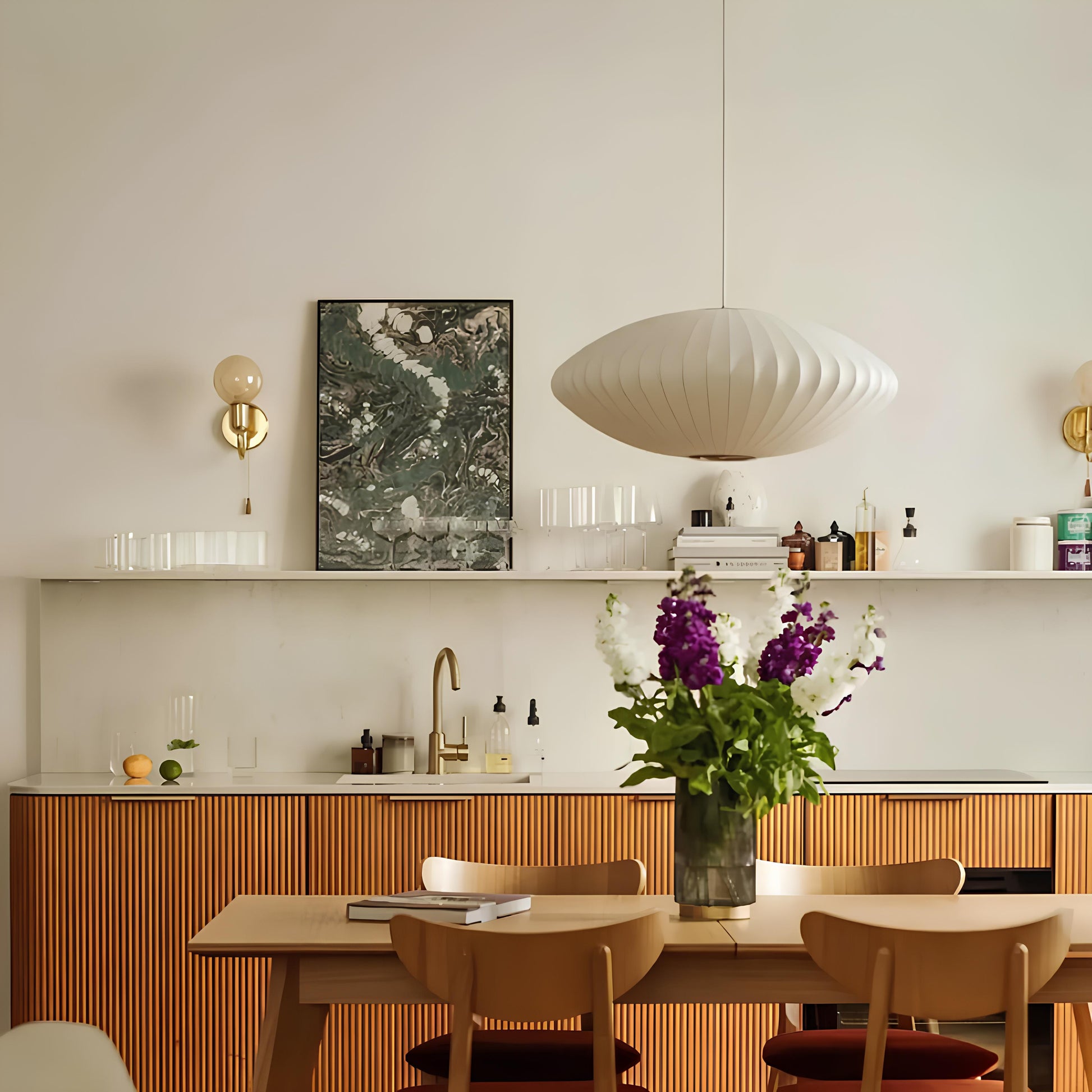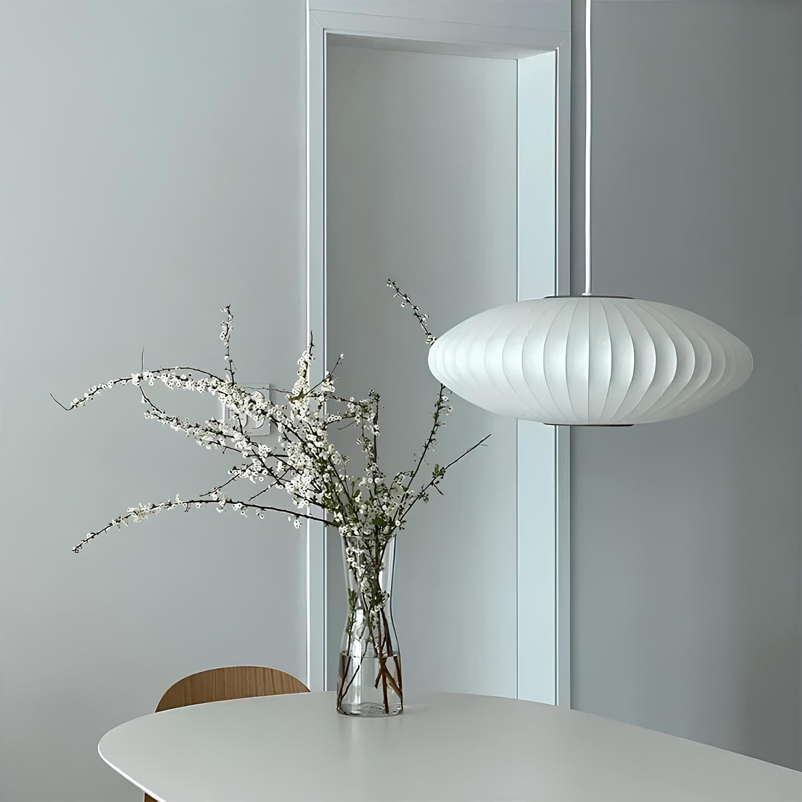 Cette suspension évoque la délicatesse et la fluidité d’une bulle en apesanteur. Sa forme douce et arrondie diffuse une lumière chaleureuse qui transforme instantanément l’ambiance de la pièce.