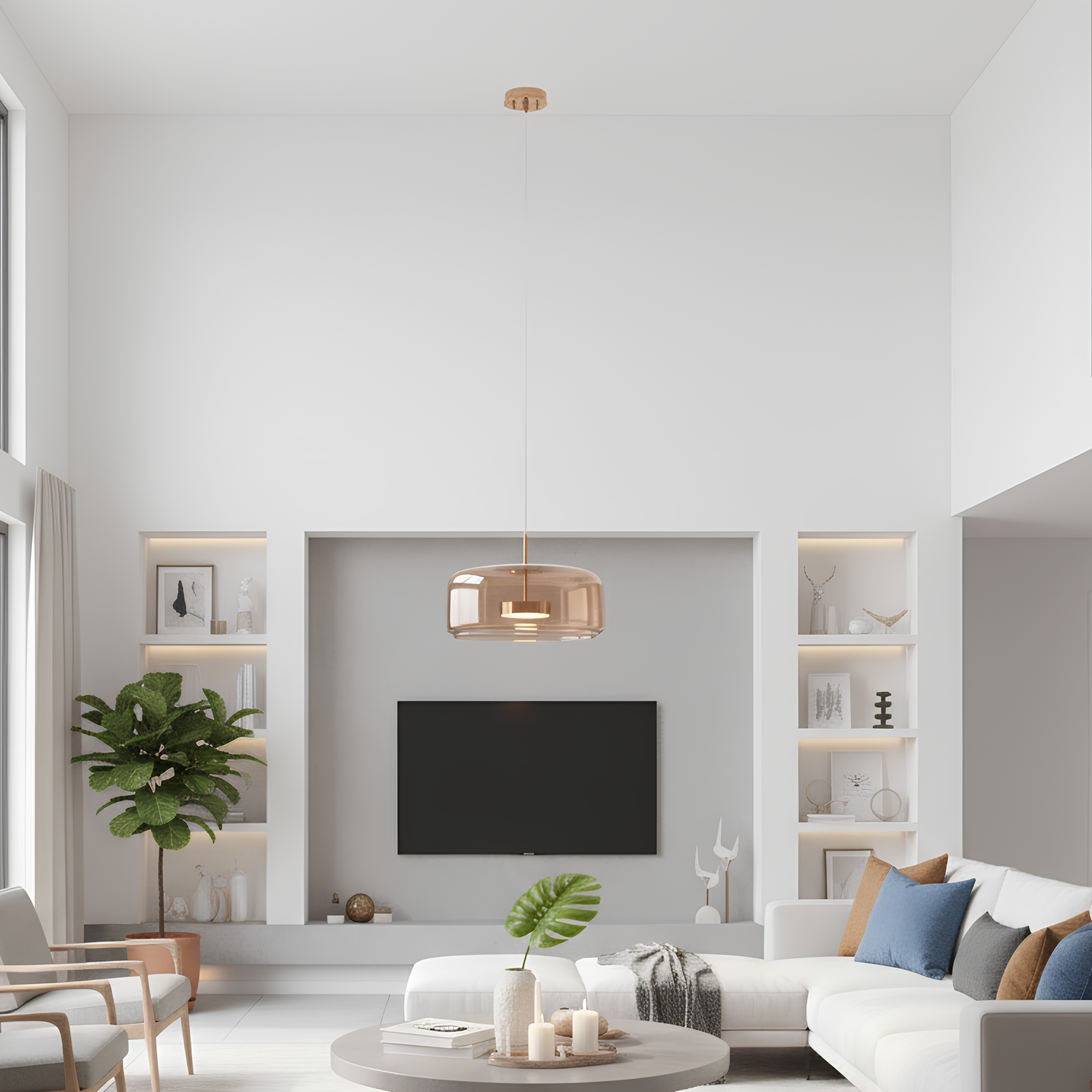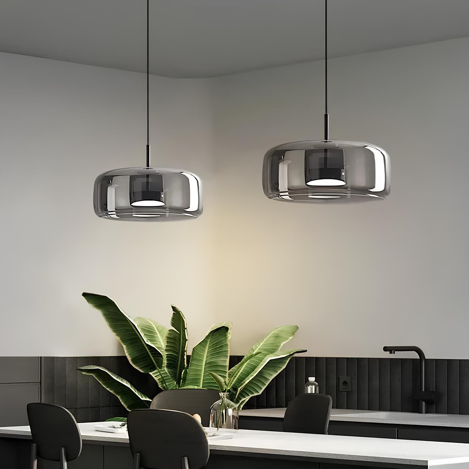 Suspension nordique en verre soufflé, disponible en gris fumé ou ambre. Design moderne et élégant, idéale pour une ambiance chaleureuse dans la chambre, le salon ou la salle à manger.