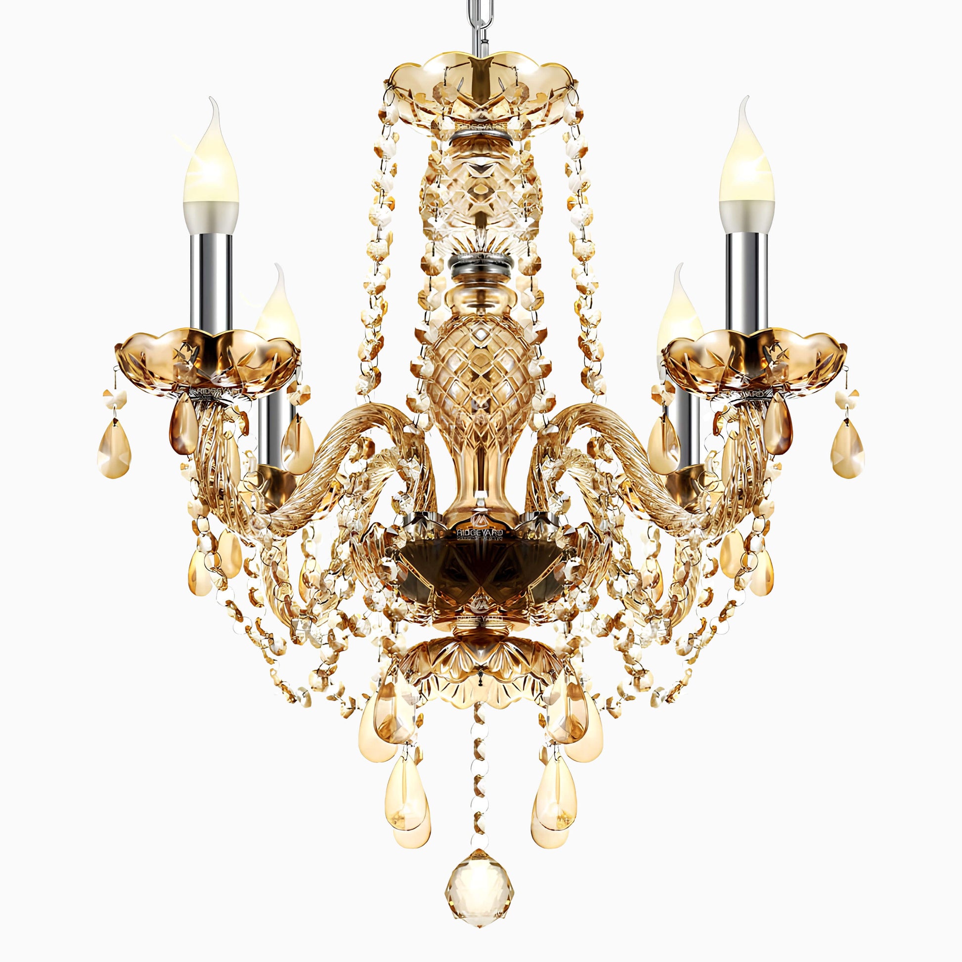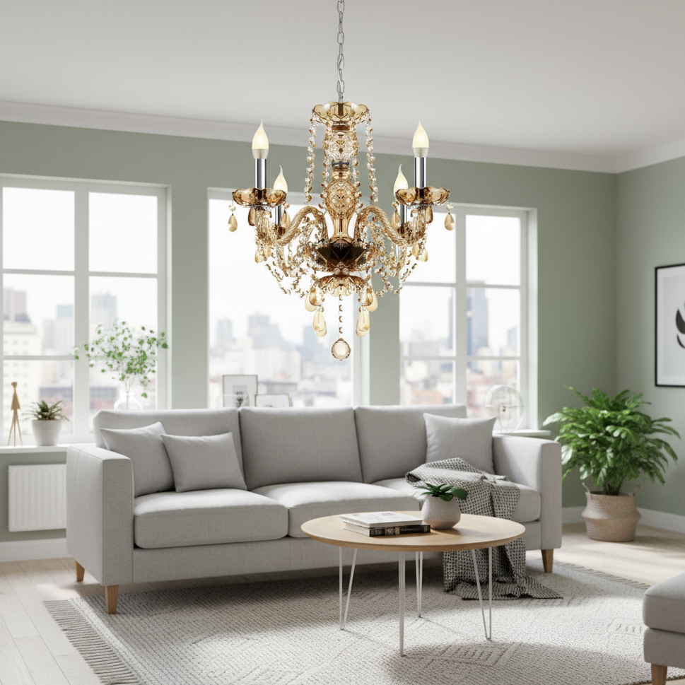 Ce lustre en cristal K5 à 4 bras diffuse une lumière scintillante qui sublime vos espaces. Disponible en plusieurs finitions (clair, cognac, ambre, doré), il combine raffinement et modernité pour un intérieur lumineux et chaleureux.