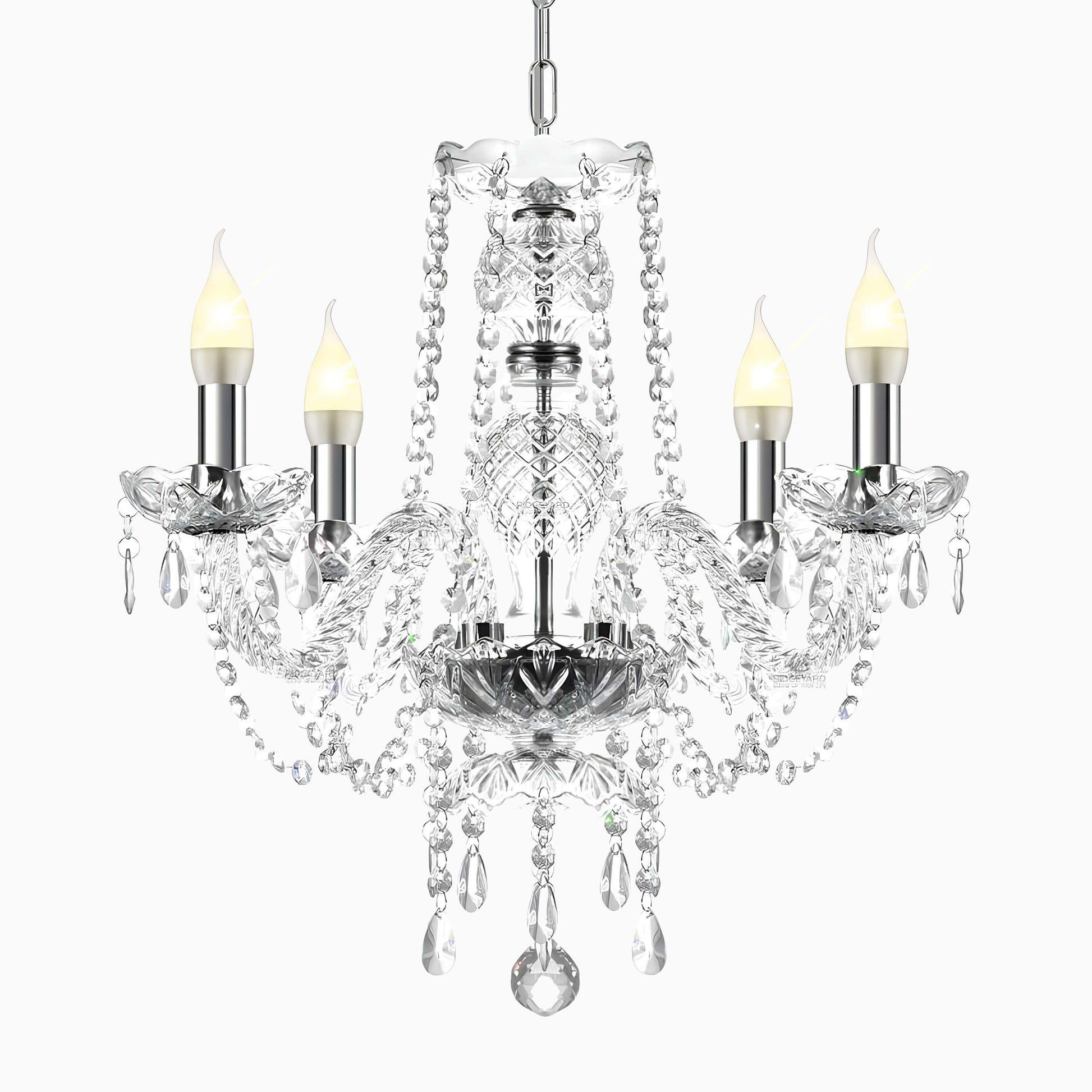 Avec ses pampilles et ses bras ornés de cristal K5, ce lustre offre un jeu de lumière unique qui transforme instantanément l’ambiance de la pièce.