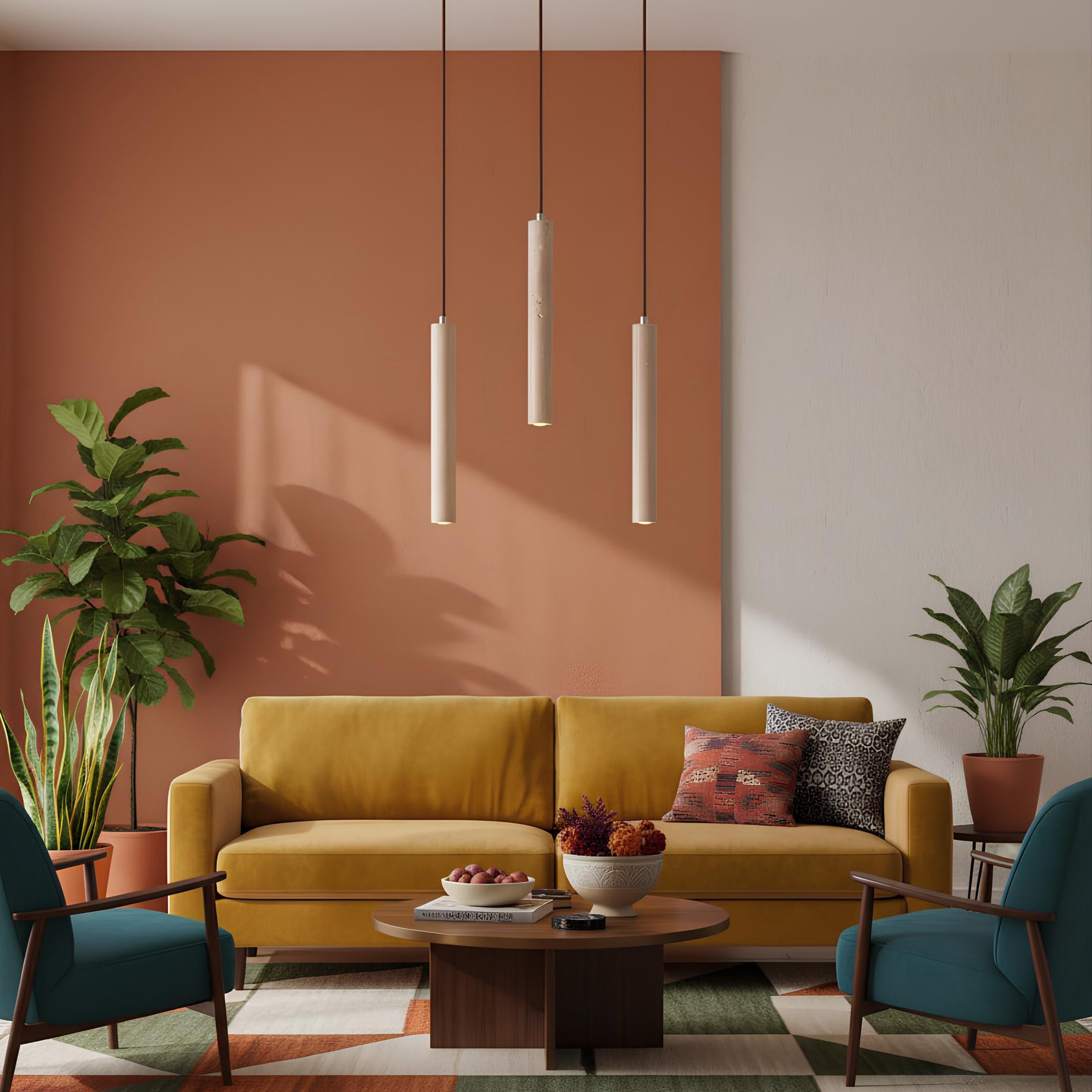 Cette suspension ne se contente pas d’éclairer : elle habille vos pièces avec caractère. Le bois naturel contraste avec la pierre claire pour créer un effet décoratif unique, à la fois moderne et rétro.